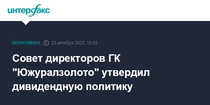 Москва. 23 октября. INTERFAX.RU - Совет директоров группы компаний "Южуралзолото" (ЮГК) утвердил дивидендную политику, сообщил холдинг.
