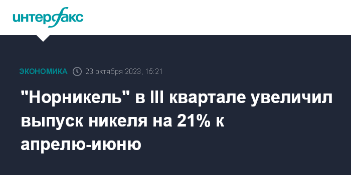 "Норникель" в III квартале увеличил выпуск никеля на 21% к апрелю-июню
