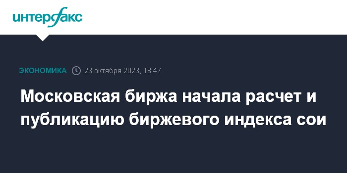 Московская биржа начала расчет и публикацию биржевого индекса сои