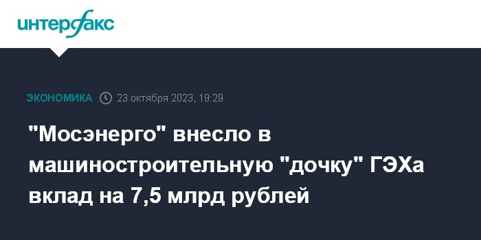 "Мосэнерго" внесло в машиностроительную "дочку" ГЭХа вклад на 7,5 млрд рублей