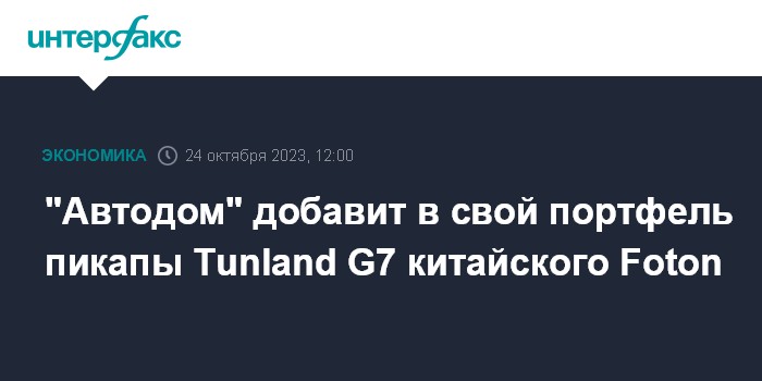 Москва. 24 октября. INTERFAX.RU - Дилерский холдинг "Автодом" расширяет модельный ряд китайских автомобилей Foton в своем портфеле для российского рынка пикапом Foton Tunland G7, сообщила пресс-служба компании.