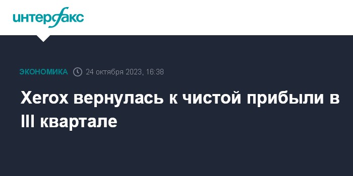 Москва. 24 октября. INTERFAX.RU - Американская Xerox Holdings вернулась к чистой прибыли в третьем квартале 2023 года, а скорректированный показатель оказался лучше ожиданий рынка.