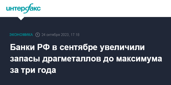 Банки РФ в сентябре увеличили запасы драгметаллов до максимума за три года