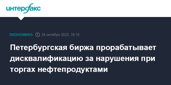 Петербургская биржа прорабатывает дисквалификацию за нарушения при торгах нефтепродуктами