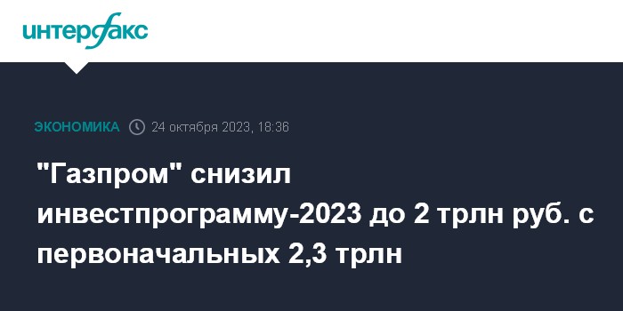 "Газпром" снизил инвестпрограмму-2023 до 2 трлн руб. с первоначальных 2,3 трлн