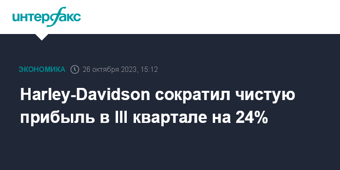 Москва. 26 октября. INTERFAX.RU - Крупнейший американский производитель мотоциклов Harley-Davidson Inc. сократил чистую прибыль и выручку в третьем квартале 2023 года, однако скорректированная прибыль и выручка превысили ожидания рынка.