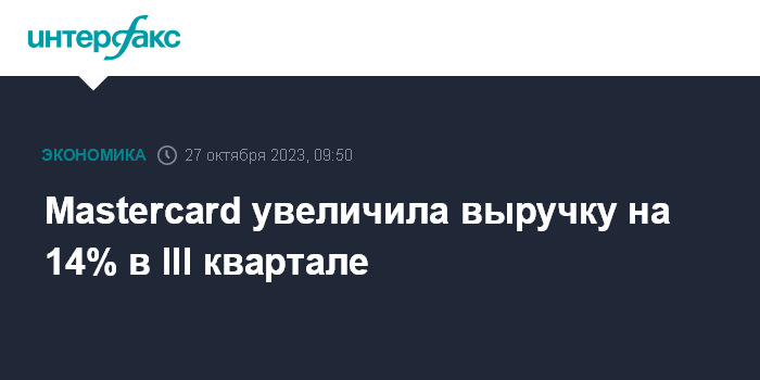 Москва. 27 октября. INTERFAX.RU - Американская компания Mastercard Inc., оператор одной из крупнейших в мире платежных систем, увеличила чистую прибыль и выручку в третьем квартале 2023 года, причем скорректированная прибыль превысила ожидания рынка, а выручка оказалась на уровне прогнозов.