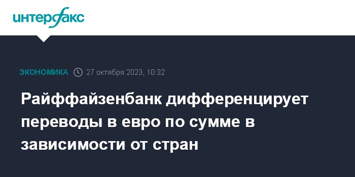 Москва. 27 октября. INTERFAX.RU - Райффайзенбанк с 1 ноября ограничит сумму переводов в евро для физлиц в ряд стран.