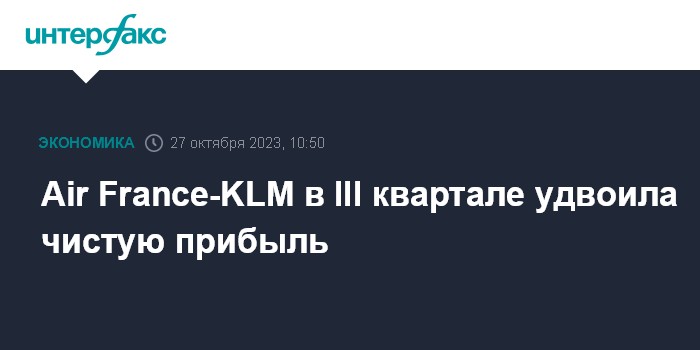 Москва. 27 октября. INTERFAX.RU - Франко-голландская авиакомпания Air France-KLM в третьем квартале увеличила чистую прибыль вдвое, однако результат недотянул до прогноза аналитиков.