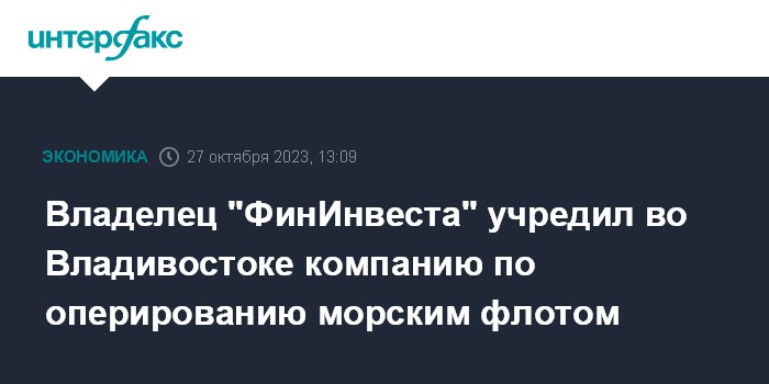 Владелец "ФинИнвеста" учредил во Владивостоке компанию по оперированию морским флотом