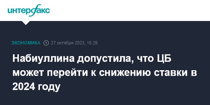 Набиуллина допустила, что ЦБ может перейти к снижению ставки в 2024 году