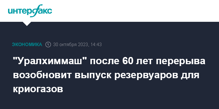 "Уралхиммаш" после 60 лет перерыва возобновит выпуск резервуаров для криогазов