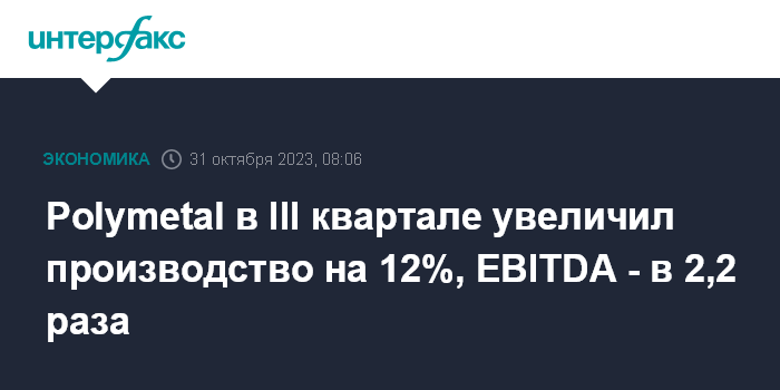 Polymetal в III квартале увеличил производство на 12%, EBITDA - в 2,2 раза