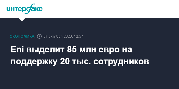 Eni выделит 85 млн евро на поддержку 20 тыс. сотрудников