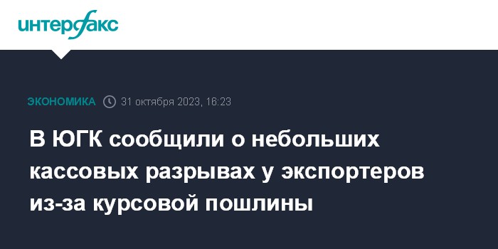 В ЮГК сообщили о небольших кассовых разрывах у экспортеров из-за курсовой пошлины