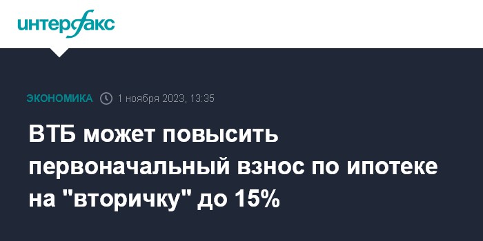 ВТБ может повысить первоначальный взнос по ипотеке на "вторичку" до 15%