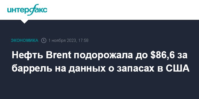 Нефть Brent подорожала до $86,6 за баррель на данных о запасах в США