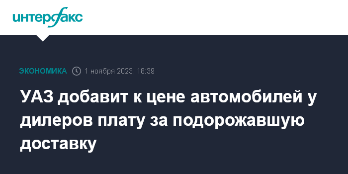 "Во второй половине текущего года УАЗ столкнулся с резким и неуправляемым удорожанием тарифов на логистические услуги, в результате чего с начала 2023 года стоимость затрат на транспортировку готовой продукции по территории России увеличилась более чем вдвое", - говорится в сообщении.
