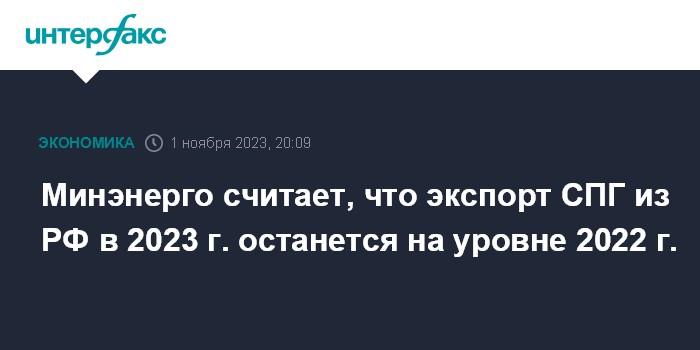 Москва. 1 ноября. INTERFAX.RU - Экспорт сжиженного природного газа (СПГ) в 2023 году останется на уровне прошлого года, уверен министр энергетики РФ Николай Шульгинов.