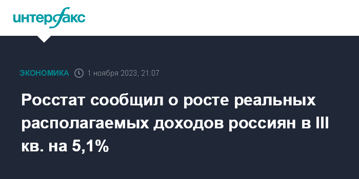 В целом за январь-сентябрь 2023 года Росстат оценил рост реальных располагаемых доходов населения на уровне 4,8%.