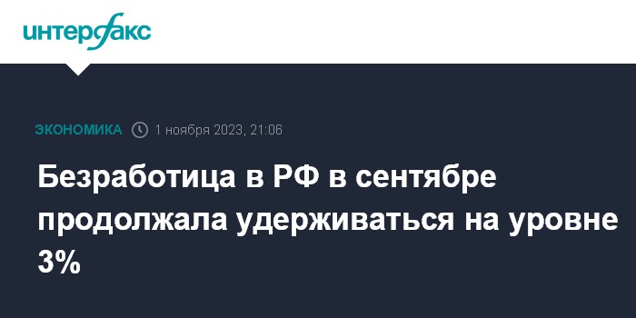 Безработица в РФ в сентябре продолжала удерживаться на уровне 3%