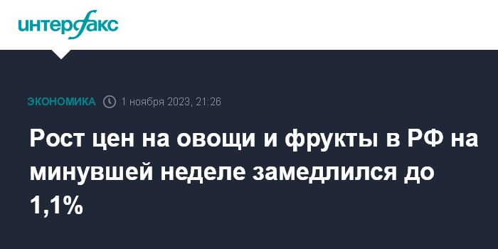 Рост цен на овощи и фрукты в РФ на минувшей неделе замедлился до 1,1%