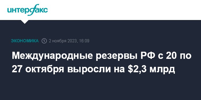 Международные резервы РФ с 20 по 27 октября выросли на $2,3 млрд