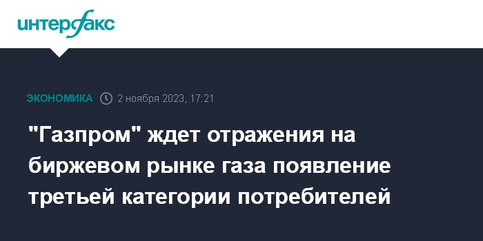 "Газпром" ждет отражения на биржевом рынке газа появление третьей категории потребителей