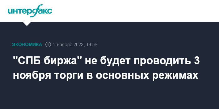"СПБ биржа" не будет проводить 3 ноября торги в основных режимах