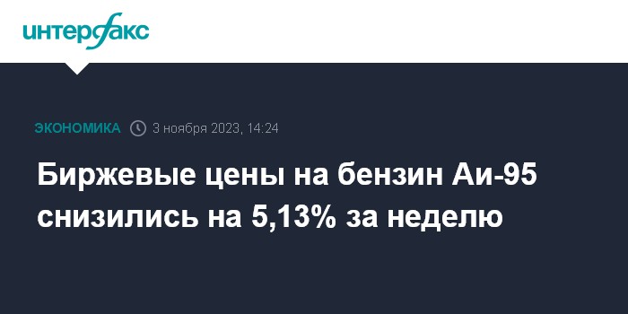 Биржевые цены на бензин Аи-95 снизились на 5,13% за неделю