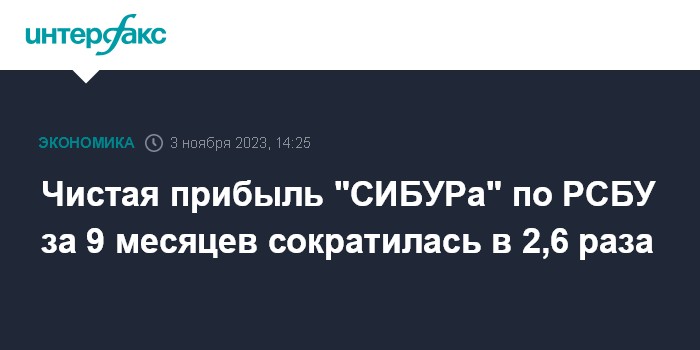 Чистая прибыль "СИБУРа" по РСБУ за 9 месяцев сократилась в 2,6 раза