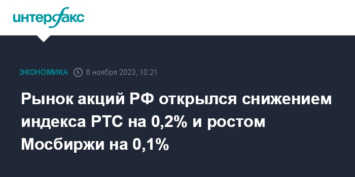 Рынок акций РФ открылся снижением индекса РТС на 0,2% и ростом Мосбиржи на 0,1%