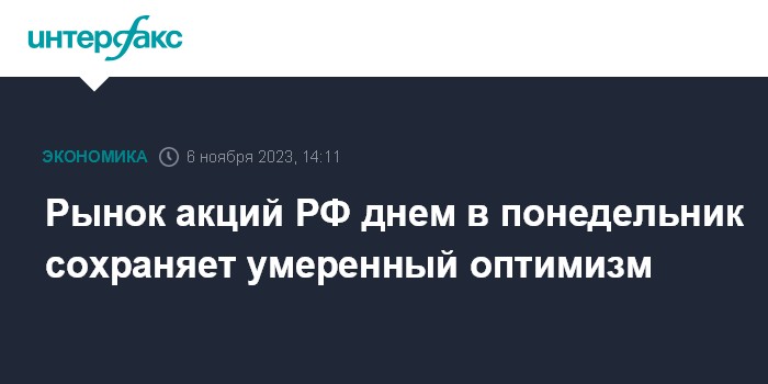 Рынок акций РФ днем в понедельник сохраняет умеренный оптимизм