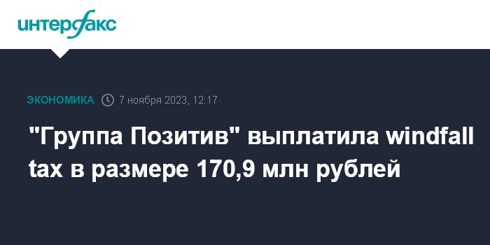 "Группа Позитив" выплатила windfall tax в размере 170,9 млн рублей