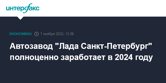 Москва. 7 ноября. INTERFAX.RU - "АвтоВАЗ" ожидает полноценного запуска работы автозавода "Лада Санкт-Петербург" в 2024 году, сообщил президент "АвтоВАЗа" Максим Соколов.