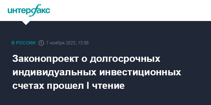Законопроект о долгосрочных индивидуальных инвестиционных счетах прошел I чтение