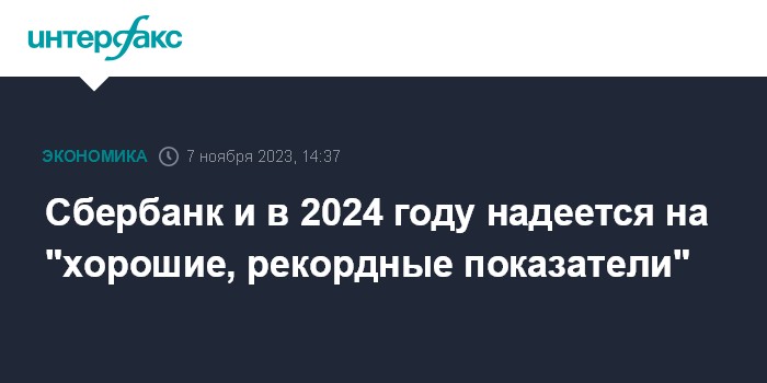 Сбербанк и в 2024 году надеется на "хорошие, рекордные показатели"