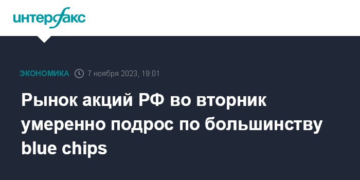 Рынок акций РФ во вторник умеренно подрос по большинству blue chips