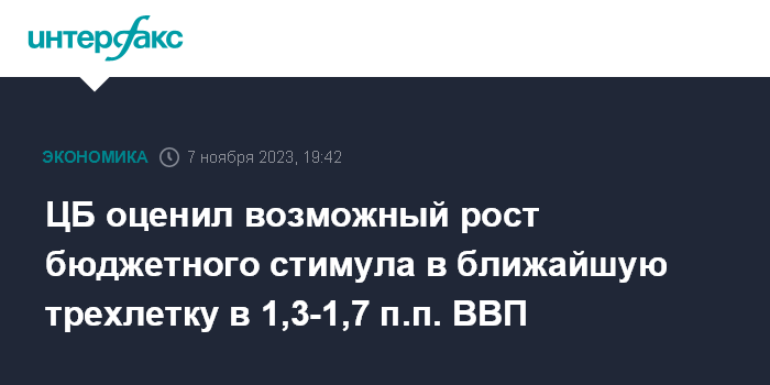 ЦБ оценил возможный рост бюджетного стимула в ближайшую трехлетку в 1,3-1,7 п.п. ВВП
