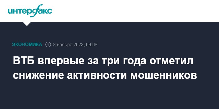 Москва. 8 ноября. INTERFAX.RU - ВТБ фиксирует снижение мошеннических атак на розничных клиентов впервые за три года, за 10 месяцев 2023 года их количество снизилось до 5,8 млн, что на 11% меньше, чем годом ранее, сообщил через пресс-службу старший вице-президент ВТБ, руководитель департамента цифрового бизнеса Никита Чугунов.