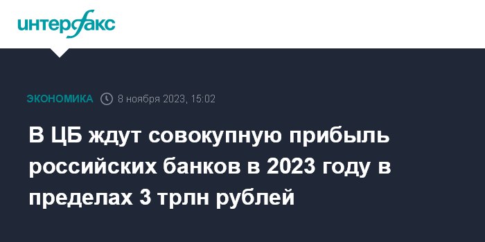 В ЦБ ждут совокупную прибыль российских банков в 2023 году в пределах 3 трлн рублей