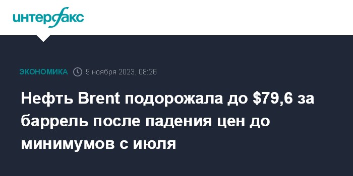 Нефть Brent подорожала до $79,6 за баррель после падения цен до минимумов с июля