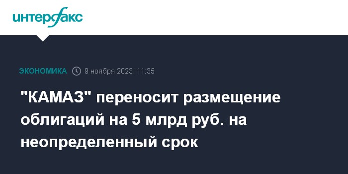 "КАМАЗ" переносит размещение облигаций на 5 млрд руб. на неопределенный срок