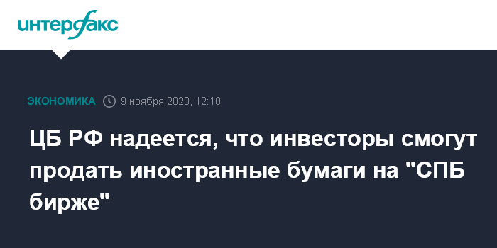 ЦБ РФ надеется, что инвесторы смогут продать иностранные бумаги на "СПБ бирже"