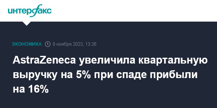 Москва. 9 ноября. INTERFAX.RU - Фармацевтическая компания AstraZeneca Plc увеличила выручку в третьем квартале 2023 года на 5%, но ее чистая прибыль уменьшилась на 16%.