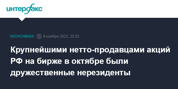 Крупнейшими нетто-продавцами акций РФ на бирже в октябре были дружественные нерезиденты