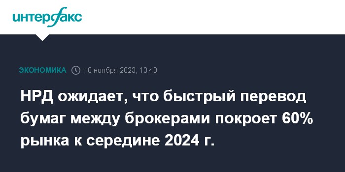 НРД ожидает, что быстрый перевод бумаг между брокерами покроет 60% рынка к середине 2024 г.