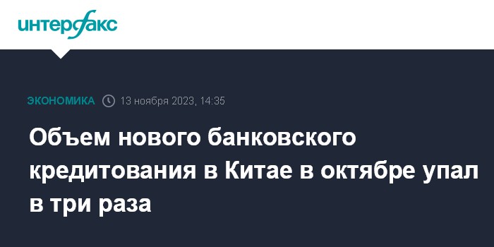 Объем нового банковского кредитования в Китае в октябре упал в три раза
