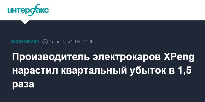 Москва. 15 ноября. INTERFAX.RU - XPeng, один из крупнейших в Китае производителей электромобилей, в третьем квартале 2023 года увеличила чистый убыток более чем в 1,5 раза, а ее выручка выросла слабее прогнозов рынка.