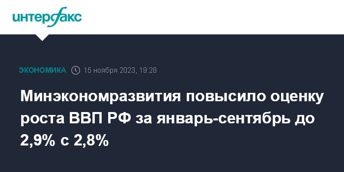 Таким образом Минэкономразвития повысило свою оценку роста ВВП РФ за январь-сентябрь 2023 года с 2,8% до 2,9%.